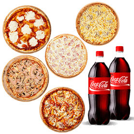 5 Pizzas sénior au choix + 2 Maxi coca cola 1.25L.
