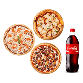 3 Pizzas junior au choix + 1 Maxi coca cola 1.25l.