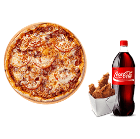 1 Pizza familiale au choix + 10 Chicken wings + 1 Maxi coca cola 1.25l.