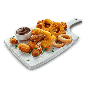 3 Chicken wings, 3 Nuggets, 3 Oignons rings, 3 Calamars fritti,++ + Frites et Sauce.